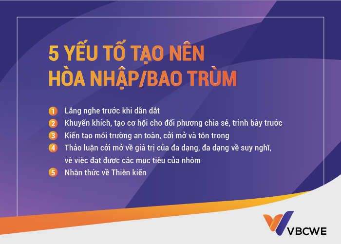 >>> Liên hệ director@vbcwe.com để được tư vấn thêm về các giải pháp đào tạo và xây dựng chính sách bình đẳng, đa dạng và bao trùm tại nơi làm việc.